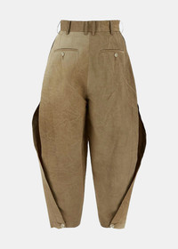 Polyester Pear pants in tan. Hook and zip fly fastening Two side slit pockets Two rear jetted pockets Side slits 100% Polyester Made in Italy.