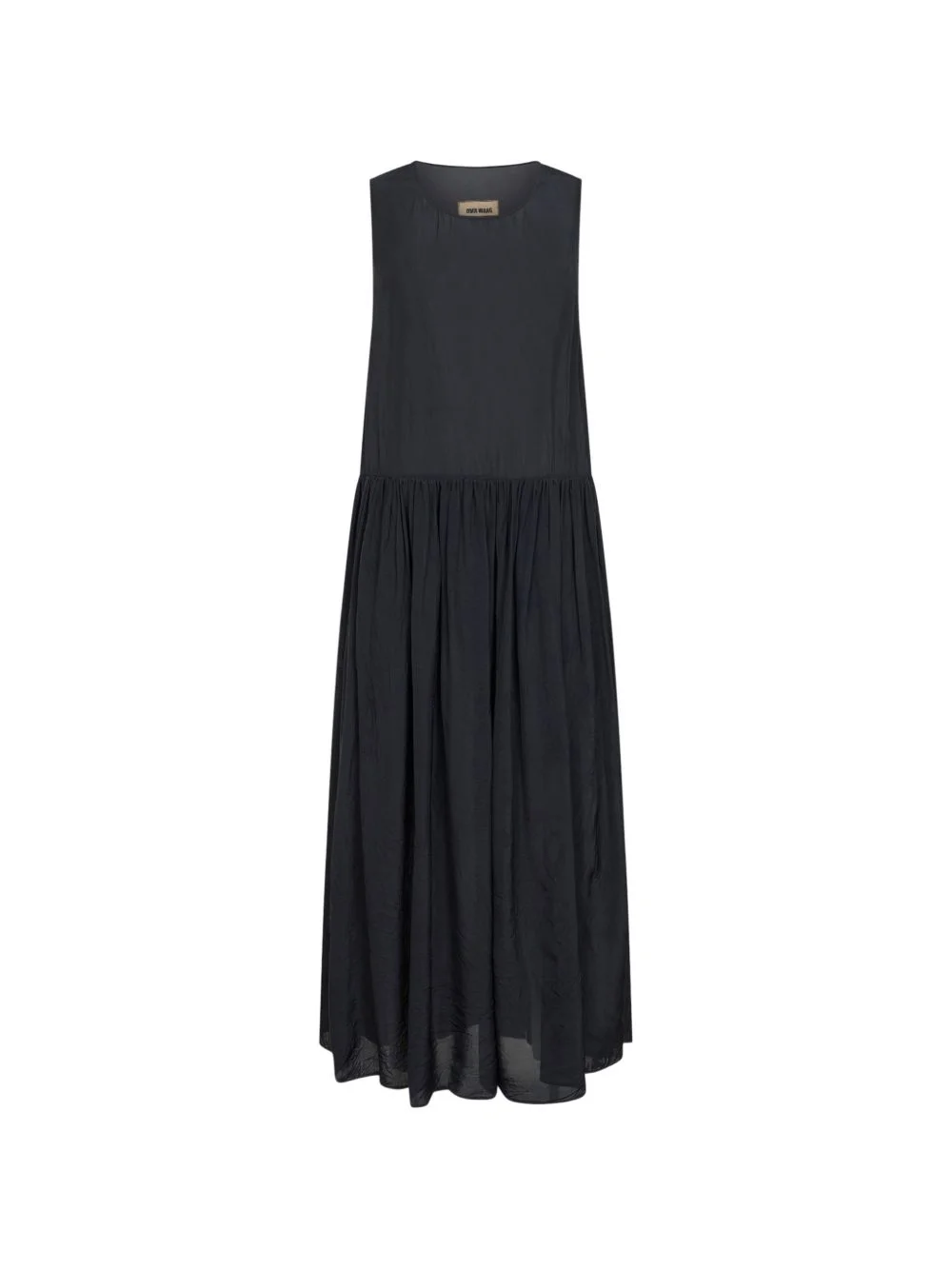 Round-neck Wide-shoulder straps Stitching detail Cut-waist Gathered detail 100% Viscose Made in Italy.