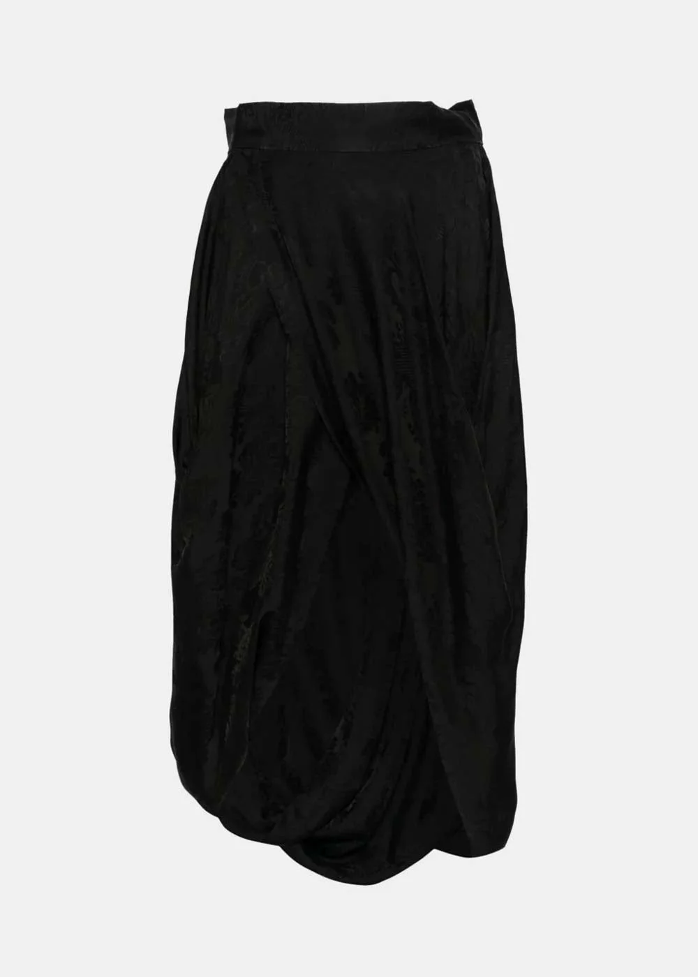 Asymmetric skirt in black. Draped design Wrap style Side slit pockets 100% Fabric Made in Italy.