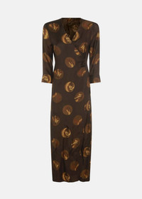 Wrap printed dress in brown. All-over print Wrap design Three-quarter sleeves Tie fastening 50% Viscose 50% Copper Made in Italy.