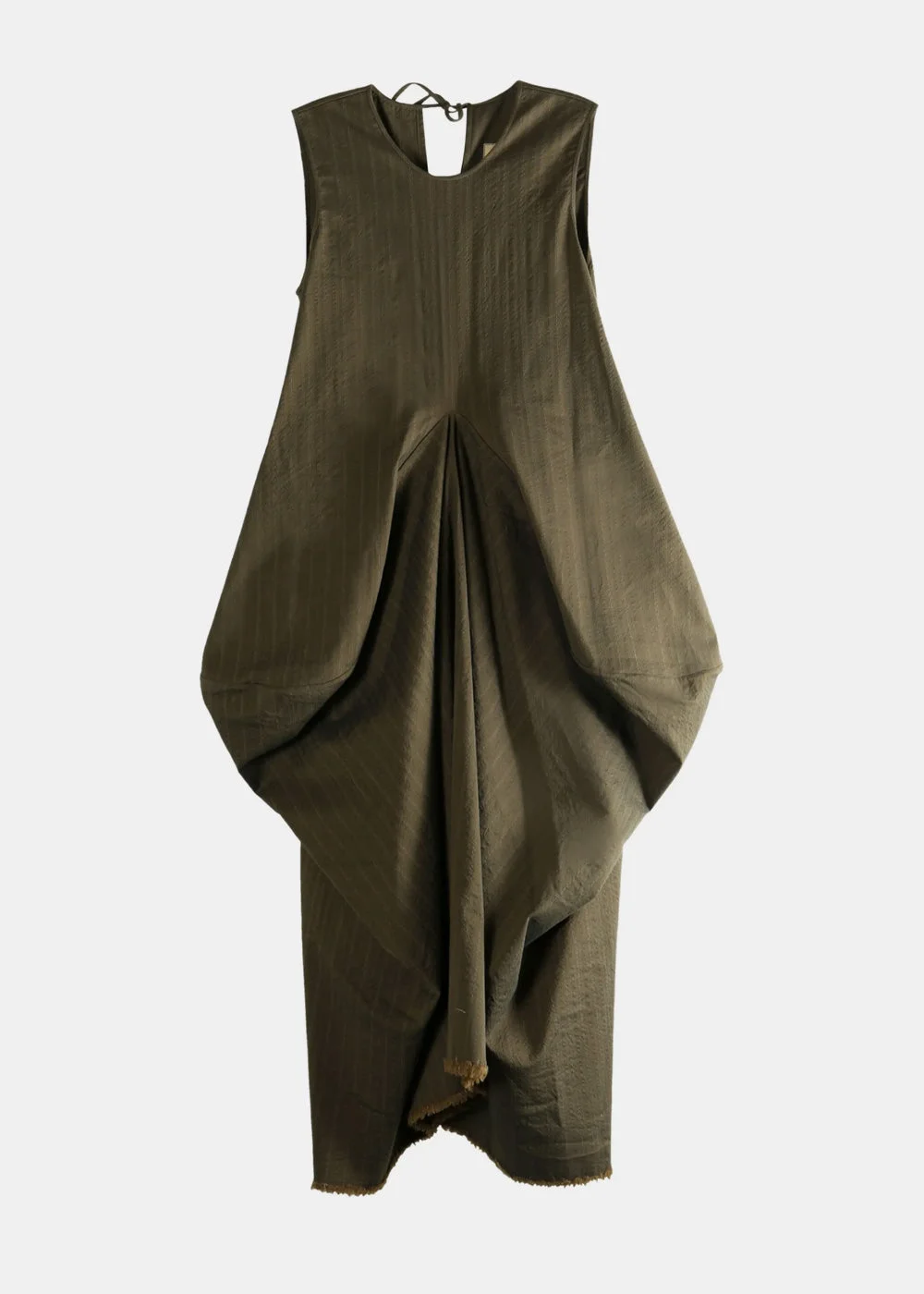Sleeveless dress in brown. Striped Rear tie fastening Frayed hem Gathered detail 69% Wool 28% Viscose 2% Elastane 1% Cotton Made in Italy.