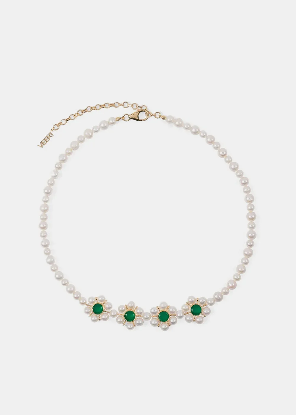 The four flower necklace in gold-tone. Lobster claw fastening Adjustable-length chain Tonal logo plaque Normal everyday use and external agents may reduce the lustre of gemstones and gold surfaces. To maintain, use specific, non-abrasive products specially meant for cleaning jewellery. 100% 18kt Gold Vermeil Made in Italy.