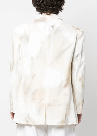 Cotton blazer jacket in ivory white with abstract pattern print throughout. Notched lapels Front button fastening Chest welt pocket Two front flap pockets Buttoned-cuff sleeves Lining: 100% Cupro, 100% Cotton. Outer: 100% Cotton. Imported. HZ J44 059 1 02
