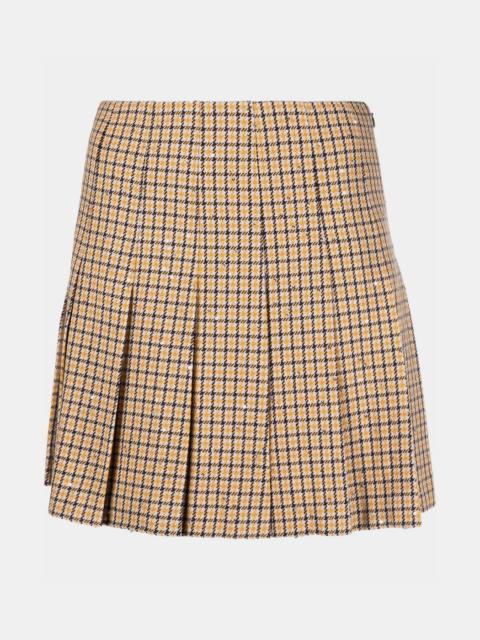 Yellow Sequin Pied De Poule Pleated Mini Skirt