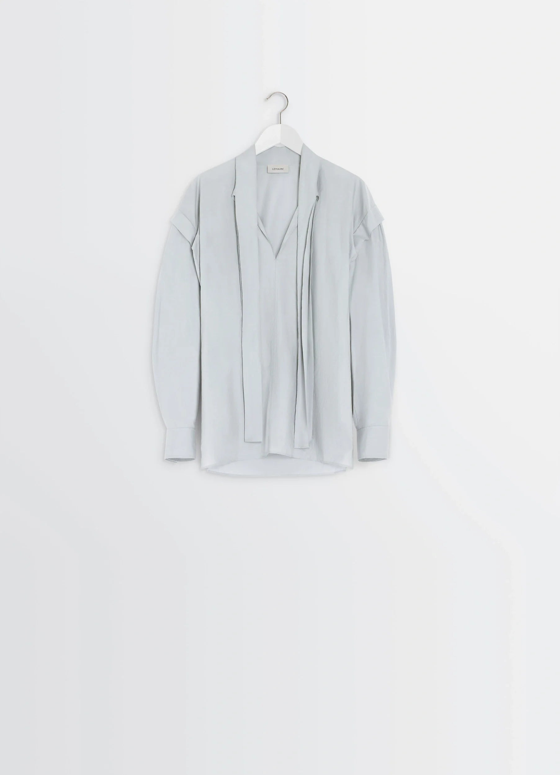 This ascot blouse is inspired by Lemaire's love for movement. It is made from a washed cotton-silk blend with a light patina and soft hand. DETAILS Ascot blouse in washed cotton silk blend Straight cut Ascot collar with side slit Shoulder pleats Trompe-l’oeil-style sleeves Straight buttoned cuffs Front slit Made in Portugal Style : TO1470 LF1500 The model is 177 cm tall and is wearing a size 36 (S). FABRICS & CARE Main Material: 80% Cotton 20% Silk