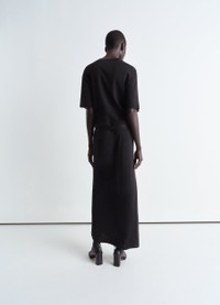 This Belted Rib T-shirt Dress is a staple of LEMAIRE’s feminine wardrobe. It is made of a mid-weight cotton jersey woven into a soft, flexible rib with a textured quality. The loose, ankle-length shape features an open round neck and rounded shoulders. Details include a ribbed collar, flat shoulder seams and a removable matching belt - long enough to be belted several times around the waist. DETAILS - Relaxed fit - Removable matching belt - Below-the-knee length - Elbow-length sleeves. - Ribbed collar and cuffs Made in Portugal Style: DR1045 LJ1016 The Model is 180cm / 5'11" ft and is wearing a size 36 (S). CARE Main Fabric: 100% Cotton Soft wash 30° Do not bleach Do not tumble dry Cool ironing Do not dry clean Dry flat
