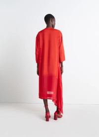 This midi dress is crafted in a patchwork of crepe de Chine, parachute silk chiffon, and a silk twill blend. Inspired by the 1920s, this piece features an asymmetrical cut with many sophisticated details, such as pleats and satin-stitch finishing. The model is 177 cm and is wearing a size 36 (S). This midi dress is crafted in a patchwork of crepe de Chine, parachute silk chiffon, and a silk twill blend. Inspired by the 1920s, this piece features an asymmetrical cut with many sophisticated details, such as pleats and satin-stitch finishing. The model is 177 cm and is wearing a size 36 (S). DETAILS Dress in patchwork of fabrics including crepe de Chine and parachute silk chiffon Oversized cut Midi-length Lightweight unlined model Crewneck Buttoned closure Three-quarter sleeves Blind tucks Panels finished with satin stitching Draped side panels Asymmetrical hem with side slit Made in Portugal Style : DR1118 LF1472 Dress in patchwork of fabrics including crepe de Chine and parachute silk chiffon Oversized cut Midi-length Lightweight unlined model Crewneck Buttoned closure Three-quarter sleeves Blind tucks Panels finished with satin stitching Draped side panels Asymmetrical hem with side slit Made in Portugal Style : DR1118 LF1472 CARE Main Material: 73% Viscose 23% Silk 4% Elasthanne Second Material: 100% Silk Third Material: 100% Silk Do not wash Do not bleach Do not tumble dry Cool ironing Soft dry clean Main Material: 73% Viscose 23% Silk 4% Elasthanne Second Material: 100% Silk Third Material: 100% Silk Do not wash Do not bleach Do not tumble dry Cool ironing Soft dry clean