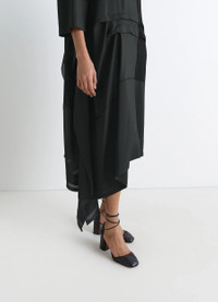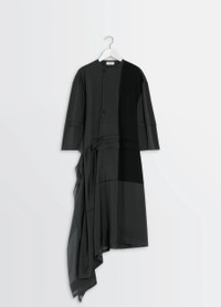 This midi dress is crafted in a patchwork of crepe de Chine, parachute silk chiffon, and a silk twill blend. Inspired by the 1920s, this piece features an asymmetrical cut with many sophisticated details, such as pleats and satin-stitch finishing. The model is 177 cm and is wearing a size 36 (S). This midi dress is crafted in a patchwork of crepe de Chine, parachute silk chiffon, and a silk twill blend. Inspired by the 1920s, this piece features an asymmetrical cut with many sophisticated details, such as pleats and satin-stitch finishing. The model is 177 cm and is wearing a size 36 (S). DETAILS Dress in patchwork of fabrics including crepe de Chine and parachute silk chiffon Oversized cut Midi-length Lightweight unlined model Crewneck Buttoned closure Three-quarter sleeves Blind tucks Panels finished with satin stitching Draped side panels Asymmetrical hem with side slit Made in Portugal Style : DR1118 LF1472 Dress in patchwork of fabrics including crepe de Chine and parachute silk chiffon Oversized cut Midi-length Lightweight unlined model Crewneck Buttoned closure Three-quarter sleeves Blind tucks Panels finished with satin stitching Draped side panels Asymmetrical hem with side slit Made in Portugal Style : DR1118 LF1472 CARE Main Material: 73% Viscose 23% Silk 4% Elasthanne Second Material: 100% Silk Third Material: 100% Silk Do not wash Do not bleach Do not tumble dry Cool ironing Soft dry clean Main Material: 73% Viscose 23% Silk 4% Elasthanne Second Material: 100% Silk Third Material: 100% Silk Do not wash Do not bleach Do not tumble dry Cool ironing Soft dry clean