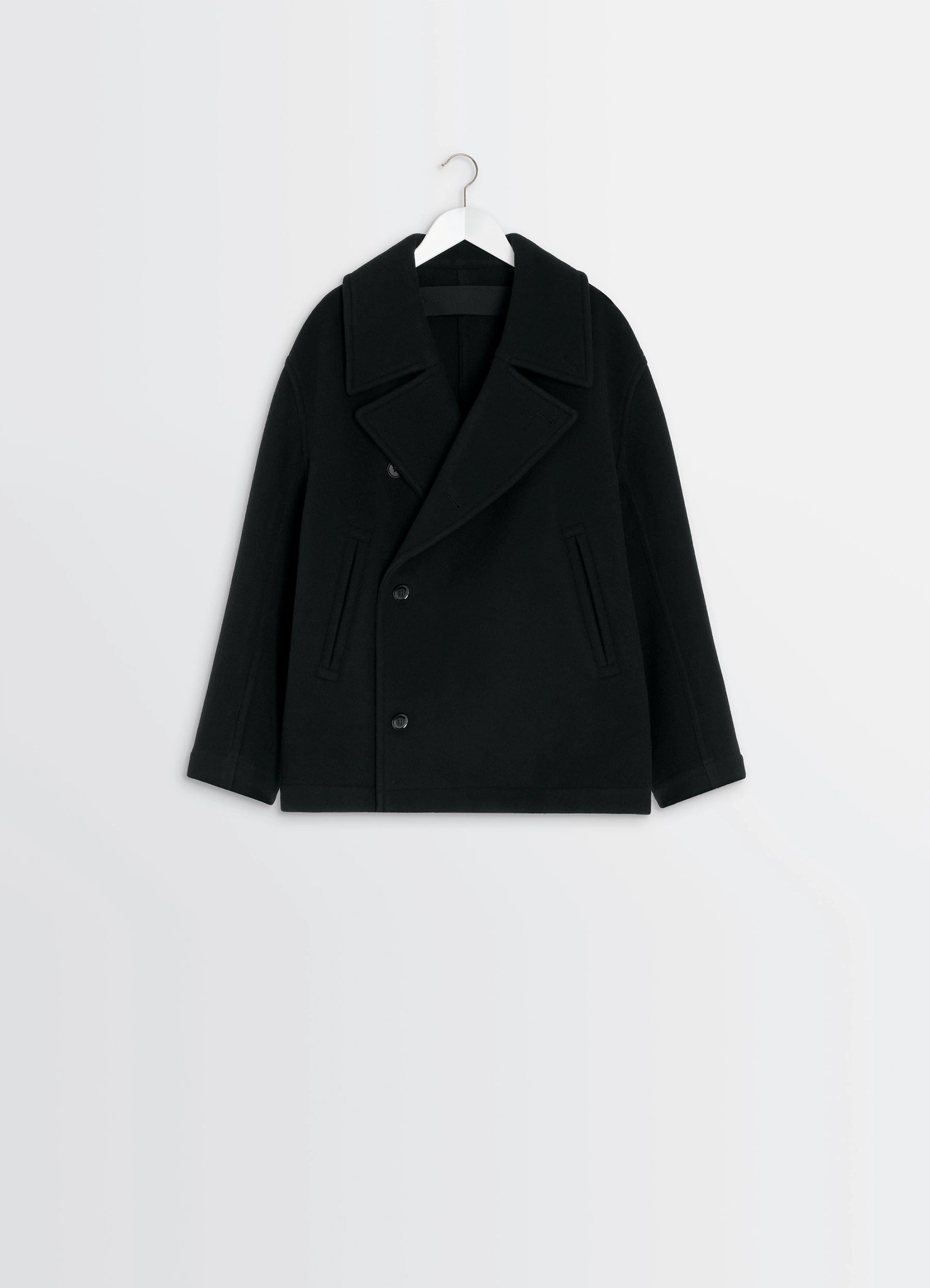 This short peacoat is a classic in Lemaire's winter wardrobe. Made from double-faced wool, it is supple, soft, and warm. The model is 187 cm tall and is wearing a size 48 (M). DETAILS Short double-faced wool peacoat Boxy cut Supple unlined model Tailored collar with buttonholes and under-collar buttons Long sleeves Double-breasted closure Welted side pockets Adjustable button tabs at the back Interior strap at the neck for hand carry Made in Lithuania Style : CO1131 LF1116 The model is 187 cm tall and is wearing a size 48 (M). CARE Main Material: 100% Wool Main Lining: 100% Cotton Do not wash Do not bleach Do not tumble dry Cool ironing Soft dry clean