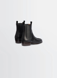 The Chelsea Boots are a new addition to the LEMAIRE vestiaire. This utility-inspired style is crafted from vegetable shiny leather with a soft texture. The lining is made in lambskin Nappa leather and the elastic on the side is covered with leather. This comfortable unisex style is slightly stacked with a 45mm heel. DETAILS - Vegetable shiny leather - Leather covered elastic band - Lambskin Nappa leather lining - 45mm / 1,8in heel Made in Portugal Style: FO0149 LL0106 FABRICS & CARE Main Fabric: 100% Cow Main Lining: 100% Cow If exposed to water or high humidity, dry your shoes well with an absorbent cloth and let them air dry before storing them. Smooth leather: Use a soft cloth and apply a measured amount of uncolour milk or cream. Suede leather: Brush lightly with a sponge or special suede cloth.