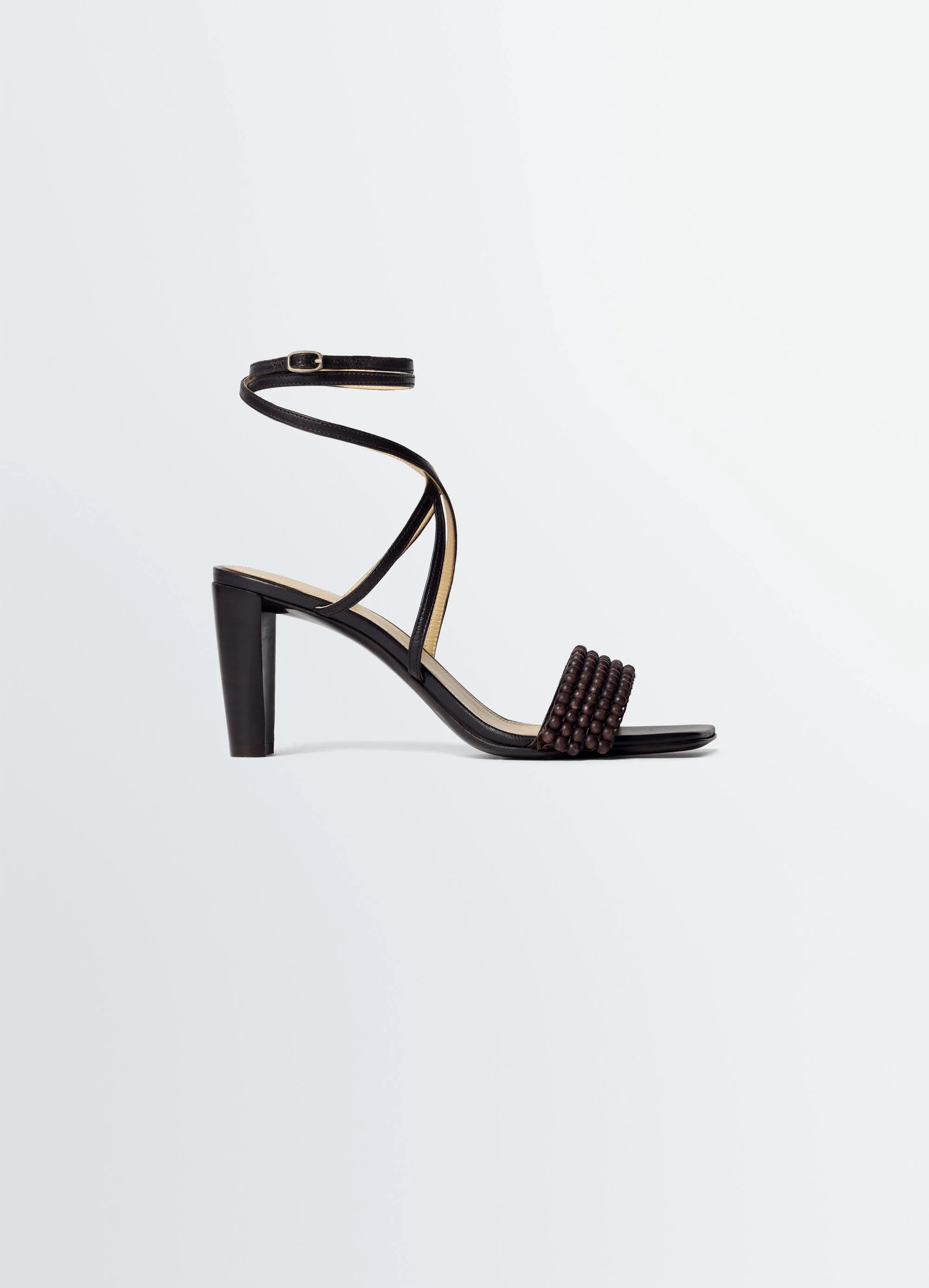 CROSS SANDALS 80 MM HEEL IN LEATHER WITH BEADS
