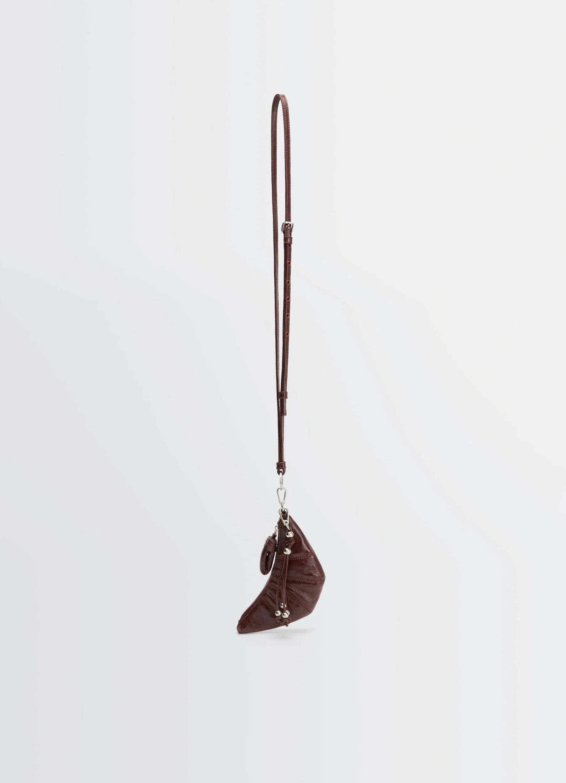 Inspired by the iconic Croissant line, the crossbody coin purse introduces a new silhouette with versatile wearability. Its folded half-moon appearance is achieved through an assembly of topstitched panels. To celebrate Valentine's Day, Lemaire revisits the infinity knot - a symbol of prosperity, happiness and longevity - in a charm version that accompanies this purse made from coated cotton canvas with a textured, shiny look. Inspired by the iconic Croissant line, the crossbody coin purse introduces a new silhouette with versatile wearability. Its folded half-moon appearance is achieved through an assembly of topstitched panels. To celebrate Valentine's Day, Lemaire revisits the infinity knot - a symbol of prosperity, happiness and longevity - in a charm version that accompanies this purse made from coated cotton canvas with a textured, shiny look. DETAILS Crossbody Croissant coin purse in coated cotton Adjustable and removable strap with buckle and ring Soft model with tone-on-tone topstitched panels Ring and metal engraved carabiner’s clasp Removable charm in knotted coated cotton and metal beads Zipper closure with quilted leather pull tab Cotton canvas lining Lemaire embossed interior leather label Silver-plated metalwork Dimensions: Length: 18 cm Height: 9 cm Depth: 3 cm Arrow height: 50 cm Strap length: 105 cm Made in Italy Style : SL0054 LL0018 Crossbody Croissant coin purse in coated cotton Adjustable and removable strap with buckle and ring Soft model with tone-on-tone topstitched panels Ring and metal engraved carabiner’s clasp Removable charm in knotted coated cotton and metal beads Zipper closure with quilted leather pull tab Cotton canvas lining Lemaire embossed interior leather label Silver-plated metalwork Dimensions: Length: 18 cm Height: 9 cm Depth: 3 cm Arrow height: 50 cm Strap length: 105 cm Made in Italy Style : SL0054 LL0018 CARE Main material: 100% cotton Main lining: 100% cotton Soft wash 30° Do not bleach Do not tumble dry Cool ironing Soft dry clean Main material: 100% cotton Main lining: 100% cotton Soft wash 30° Do not bleach Do not tumble dry Cool ironing Soft dry clean