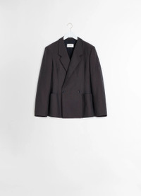 This jacket is a staple of LEMAIRE’s wardrobe. It is made in our signature tropical poly-wool, woven into a melange twill with a dense yet supple texture. The Double Breasted Tailored Jacket has a structured shoulder and a comfortable fit, accented by a large lapel and angled darts. Its tailored details include a welt pocket and two large patch pockets. DETAILS - Relaxed fit - Padded shoulders - Corozo buttons - Fully lined - Patch pockets - Interior pocket Made in Hungary Style: JA1073 LF414 FABRICS & CARE Main Fabric: 55% Polyester, 45% Wool Main Lining: 51% Cotton, 49% Viscose Second Lining: 100% Cotton Do not wash Do not bleach Do not tumble dry Cool ironing Soft dry clean