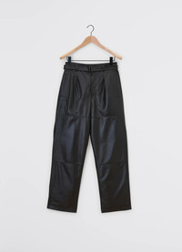 The Drawstring Parachute Pants are a new addition to the LEMAIRE vestiaire. Crafted from ultra-fine lamb leather with a remarkably soft and lightweight texture, these lined pants feature two pleats on each leg, creating a relaxed and comfortable silhouette. The waist is partially elasticated starting from the hip side, contributing to the distinctive parachute-inspired silhouette. There are classic trench pockets on the sides and a buttoned patch pocket in the back. DETAILS - Relaxed fit - Leather belted - Elasticated waist - Trench pockets - Buttoned back pocket - Lined Made in Turkey Style: PA1145 LL0094 FABRICS & CARE Main Fabric: 100% Lamb Main Lining: 51% Cotton / 49% Viscose Do not wash Do not bleach Do not tumble dry Do not iron Professional leather clean only