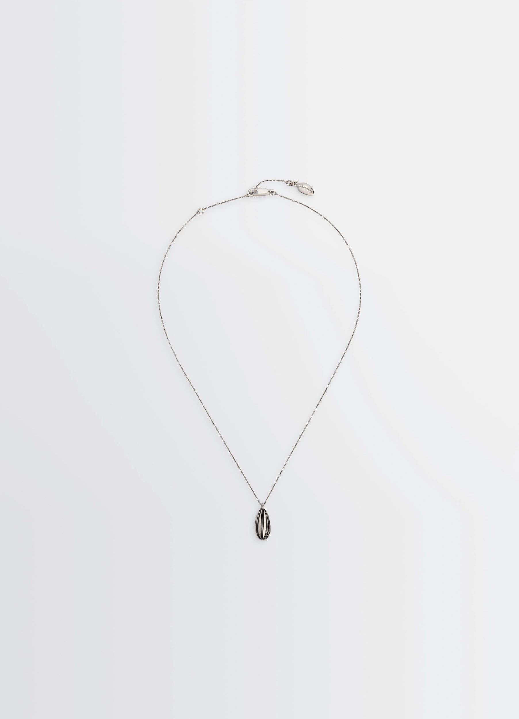 The Girasol necklace is made of brass with a silver finish and black enamel highlights. Shaped like a sunflower seed, this delicate pendant is set on a thin chain that can be worn with three different lengths. DETAILS Adjustable chain length Lobster clasp closure Engraved logo charm Metal chain Length: 41 cm first hole 43 cm second hole 46 cm third hole Made in Portugal Style: JW0028 LO036 FABRICS & CARE Main Material: 100% Brass