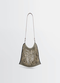 The result of a collaboration between Lemaire and Filt, the oldest French manufacturer of net shopping bags (established 1860), this large shopping bag is elegantly inspired by an everyday object. The large shopping bag is made from a combination of nylon mesh and a vegetable-tanned leather shoulder strap, demonstrating Lemaire's commitment to craftsmanship. DETAILS Filt large shopping bag in nylon net soft openwork model Shoulder or crossbody carry Vegetable-tanned leather strap Side metal rings Interior labels including: Lemaire-embossed leather and Filt-logo woven label Silver-tone hardware Dimensions: Length: 32 cm Height: 33 cm Depth: 1 cm Arrow height: 48 cm Strap length: 80 cm Made in France Style : BG0075 LF1269 FABRICS & CARE Main Fabric: 100% Polyester Second Fabric: 100% Cow Main lining: 100% Polyamide/Nylon Do not wash Do not bleach Do not tumble dry Do not iron Professional leather clean only