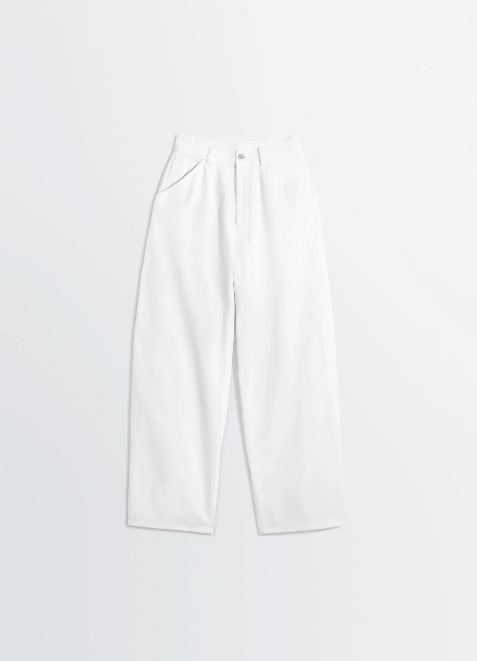 These wide-leg trousers reflect LEMAIRE’s taste for reinterpreting workwear pieces. This wardrobe essential is crafted from medium-weight bleached denim. The model is 177 cm tall and wears a size 36 (S). These wide-leg trousers reflect LEMAIRE’s taste for reinterpreting workwear pieces. This wardrobe essential is crafted from medium-weight bleached denim. The model is 177 cm tall and wears a size 36 (S). DETAILS Wide trousers in bleached denim Oversized fit Waistband with belt loops Zipped fly with double hook and button Side slant pockets with coin pocket Contrasting rivets Back patch pockets Tone-on-tone topstitching LEMAIRE embossed leather patch at back Made in Morocco Style: PA1224 LD1069 Wide trousers in bleached denim Oversized fit Waistband with belt loops Zipped fly with double hook and button Side slant pockets with coin pocket Contrasting rivets Back patch pockets Tone-on-tone topstitching LEMAIRE embossed leather patch at back Made in Morocco Style: PA1224 LD1069 CARE Main fabric: 100% cotton Jacron patch: 100% cow leather Soft wash 30° Do not bleach Do not tumble dry Cool ironing Soft dry clean Wash upside down Main fabric: 100% cotton Jacron patch: 100% cow leather Soft wash 30° Do not bleach Do not tumble dry Cool ironing Soft dry clean Wash upside down