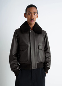 This cropped leather jacket with removable sheepskin collar completes Lemaire's winter wardrobe. It is made from cow leather, tanned to give it a soft feel and a light patina. The model is 187 cm tall and is wearing a size 48 (M). This cropped leather jacket with removable sheepskin collar completes Lemaire's winter wardrobe. It is made from cow leather, tanned to give it a soft feel and a light patina. The model is 187 cm tall and is wearing a size 48 (M). DETAILS Cropped leather blouson with fur collar Straight cut Fully lined and quilted model Removable sheepskin fur collar with snaps Closure with metal zipper and snaps Long sleeves Patch pockets with snap flaps and welted openings at the side Rib-knit trim at the cuffs and waist Welted inside pockets Interior Lemaire embossed leather label Made in Turkey Style : OW1171 LL0145 The model is 187 cm tall and is wearing a size 48 (M). Cropped leather blouson with fur collar Straight cut Fully lined and quilted model Removable sheepskin fur collar with snaps Closure with metal zipper and snaps Long sleeves Patch pockets with snap flaps and welted openings at the side Rib-knit trim at the cuffs and waist Welted inside pockets Interior Lemaire embossed leather label Made in Turkey Style : OW1171 LL0145 The model is 187 cm tall and is wearing a size 48 (M). CARE Main Material: 100% Cow Leather Second Material: 100% Sheep Main Lining: 56% Cotton 44% Viscose Second Lining: 100% Cotton Third Lining: 100% Cotton Trim: 60% Silk 40% Polylactide Do not wash Do not bleach Do not tumble dry Do not iron Professional leather clean only Main Material: 100% Cow Leather Second Material: 100% Sheep Main Lining: 56% Cotton 44% Viscose Second Lining: 100% Cotton Third Lining: 100% Cotton Trim: 60% Silk 40% Polylactide Do not wash Do not bleach Do not tumble dry Do not iron Professional leather clean only