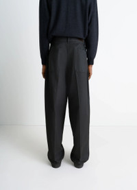 These oversized barrel-cut pants reflect Lemaire's love for workwear and reinterpretation of archetypal pieces. Made from glossy coated denim, they will develop a patina over time. The model is 187 cm tall and is wearing a size 48 (M). These oversized barrel-cut pants reflect Lemaire's love for workwear and reinterpretation of archetypal pieces. Made from glossy coated denim, they will develop a patina over time. The model is 187 cm tall and is wearing a size 48 (M). DETAILS Barrel workwear pants in shiny coated medium denim Oversized cut Belt loops at the waistband Button closure with hidden zipper Ornamental button Distinct front and black pleats Italian side pockets Ticket pocket Back patch pockets Lemaire embossed leather jacron at the back Metal rivets Contrast topstitching Made in Morocco Style : PA1261 LD1059 The model is 187 cm tall and is wearing a size 48 (M). Barrel workwear pants in shiny coated medium denim Oversized cut Belt loops at the waistband Button closure with hidden zipper Ornamental button Distinct front and black pleats Italian side pockets Ticket pocket Back patch pockets Lemaire embossed leather jacron at the back Metal rivets Contrast topstitching Made in Morocco Style : PA1261 LD1059 The model is 187 cm tall and is wearing a size 48 (M). CARE Main Material: 100% Cotton Main Lining: 100% Cotton Jacron: 100% Cow Leather Soft wash 30° Do not bleach Do not tumble dry Cool ironing Soft dry clean Wash upside down Main Material: 100% Cotton Main Lining: 100% Cotton Jacron: 100% Cow Leather Soft wash 30° Do not bleach Do not tumble dry Cool ironing Soft dry clean Wash upside down