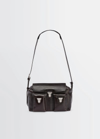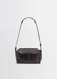 This unisex bag is part of the Gear line, a new addition to LEMAIRE’s family of accessories. Blending functionality and elegance, its design borrows codes and details of vintage tool bags with a modern twist. The Medium Gear bag is made of a smooth irregular grained vegetable-tanned leather with a shiny finish. An external back zipped pocket and two front pockets can fit small accessories while the main compartment welcomes daily essentials like a smartphone or a 11x18cm/4x7in book, protected by a zipped closure. An adjustable strap making its way around the bag allows it to be worn in different ways: on the shoulder or cross-body. DETAILS - Suede lining - Adjustable shoulder handle with shoulder pad - Leather strap crossing the inside of the bag - Height of the strap: 30 cm / 12-inch - Length: 34 cm / 13,4-inch - Width: 25 cm / 10-inch - Depth: 16 cm / 6,3-inch - Main compartment zip closure (can contain accessories, a 11x18cm/4x7in book) - External back zipped pocket (can contain accessories such as a smartphone) - Two front pockets (can contain small accessories, card holder, AirPods Pro 2 case) - Logo embossed Made in Spain Style: BG0096 LL0067 FABRICS & CARE Main Material: 100% Cow Main Lining: 100% Cow Do not wash Do not bleach Do not tumble dry Do not iron Professional leather clean only