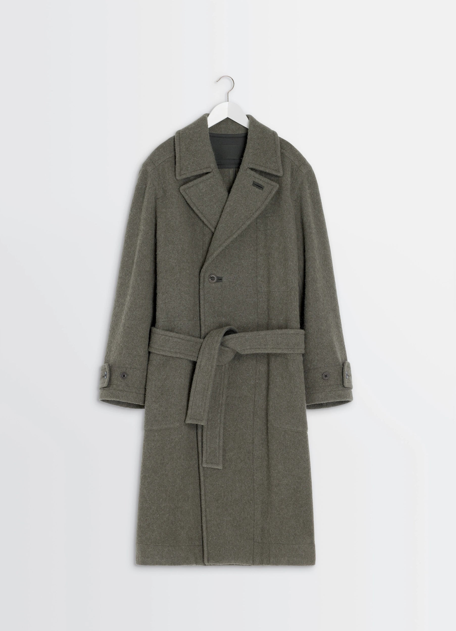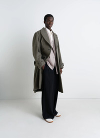 This supple coat is inspired by the trench coat, reinterpreted here in a rich, warm fabric. The wool and alpaca blend gives it texture and relief as well as lightness. This unlined piece is finished with a herringbone ribbon trim.The model is 187 cm tall and is wearing a size 48 (M). DETAILS Supple coat in a wool and alpaca blend Oversized cut Supple unlined model Tailored collar with buttonhole and under-button collar Long sleeves finished off with adjustable button tabs Double-breasted button closure Patch side pockets Belt loops at the back Matching removable belt Buttoned back vent Piped buttonholes Herringbone ribbon trim Inside patch pockets Made in Romania Style : CO1135 LF504 FABRICS & CARE Main Material: 50% Wool 50% Alpaca Main Lining: 100% Cotton Do not wash Do not bleach Do not tumble dry Cool ironing Soft dry clean