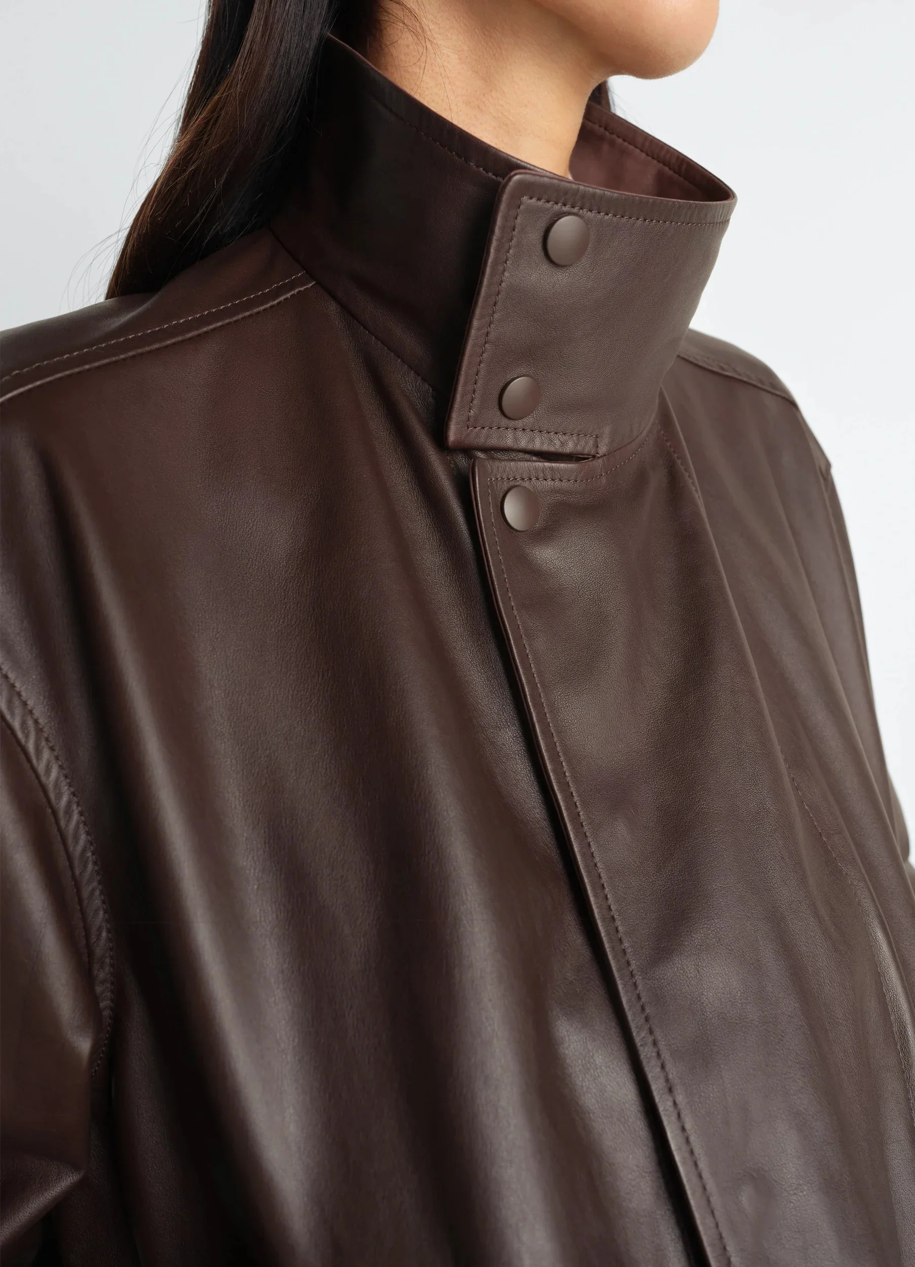 This relaxed jacket completes the LEMAIRE summer wardrobe. It is made of smooth and supple Paper leather. The model is 177 cm tall and wears a size 36 (S). This relaxed jacket completes the LEMAIRE summer wardrobe. It is made of smooth and supple Paper leather. The model is 177 cm tall and wears a size 36 (S). DETAILS Soft jacket in Paper leather Relaxed fit Fully lined model Stand collar with double snaps Long sleeves with buttoned cuffs Zipped welt chest pockets Zipped and snapped front placket Side welt pockets Elasticated hem Made in Turkey Style: OW1207 LL0175 Soft jacket in Paper leather Relaxed fit Fully lined model Stand collar with double snaps Long sleeves with buttoned cuffs Zipped welt chest pockets Zipped and snapped front placket Side welt pockets Elasticated hem Made in Turkey Style: OW1207 LL0175 CARE Main material: 100% cow leather Secondary material: 100% cow leather Main lining: 51% cotton, 49% viscose Secondary lining: 100% cotton Do not wash Do not bleach Do not tumble dry Do not iron Professional leather clean only Main material: 100% cow leather Secondary material: 100% cow leather Main lining: 51% cotton, 49% viscose Secondary lining: 100% cotton Do not wash Do not bleach Do not tumble dry Do not iron Professional leather clean only