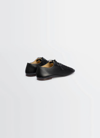 Inspired by flamenco dance slippers, the emblematic Souris line features an upper and tongue made from a single piece of leather folded in on itself. These flat derbies are made from LWG Gold-certified nappa lambskin leather, a soft, supple material characterized by its smooth feel and shiny appearance. Inspired by flamenco dance slippers, the emblematic Souris line features an upper and tongue made from a single piece of leather folded in on itself. These flat derbies are made from LWG Gold-certified nappa lambskin leather, a soft, supple material characterized by its smooth feel and shiny appearance. DETAILS Classic Souris derbies in shinny nappa lamb leather Elongated square toe Lace-up closure with waxed cotton laces Leather insoles and outsoles Made in Portugal Style: FO0245 LL0023 Classic Souris derbies in shinny nappa lamb leather Elongated square toe Lace-up closure with waxed cotton laces Leather insoles and outsoles Made in Portugal Style: FO0245 LL0023 CARE Main material: 100% lamb Main lining: 100% cow If exposed to water or high humidity, dry your shoes well with an absorbent cloth and let them air dry before storing them. Smooth leather: Use a soft cloth and apply a measured amount of uncolour milk or cream. Suede leather: Brush lightly with a sponge or special suede cloth. Main material: 100% lamb Main lining: 100% cow If exposed to water or high humidity, dry your shoes well with an absorbent cloth and let them air dry before storing them. Smooth leather: Use a soft cloth and apply a measured amount of uncolour milk or cream. Suede leather: Brush lightly with a sponge or special suede cloth.