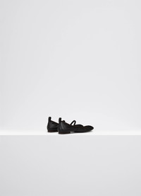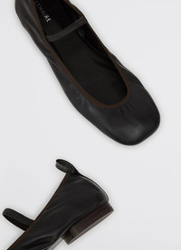 The Square Flat Ballerina is a new addition to LEMAIRE’s line of ballet-inspired shoes. Crafted from smooth Nappa leather with a soft texture, these shoes feature a round toe and a flat heel. They are adorned with a tonal braided strap across the upper foot and lined with tonal lambskin Nappa leather for a smooth feel. A leather tab at the back will help you put them on. DETAILS - Soft Nappa cow leather - Lambskin Nappa leather lining - Tonal elastic strap - Flat heel Made in Portugal Style: FO0138 LL0115 FABRICS & CARE - Main Fabric: 100% Cow - Main Lining: 100% Lamb. If exposed to water or high humidity, dry your shoes well with an absorbent cloth and let them air dry before storing them. Smooth leather: Use a soft cloth and apply a measured amount of uncolour milk or cream. Suede leather: Brush lightly with a sponge or special suede cloth.