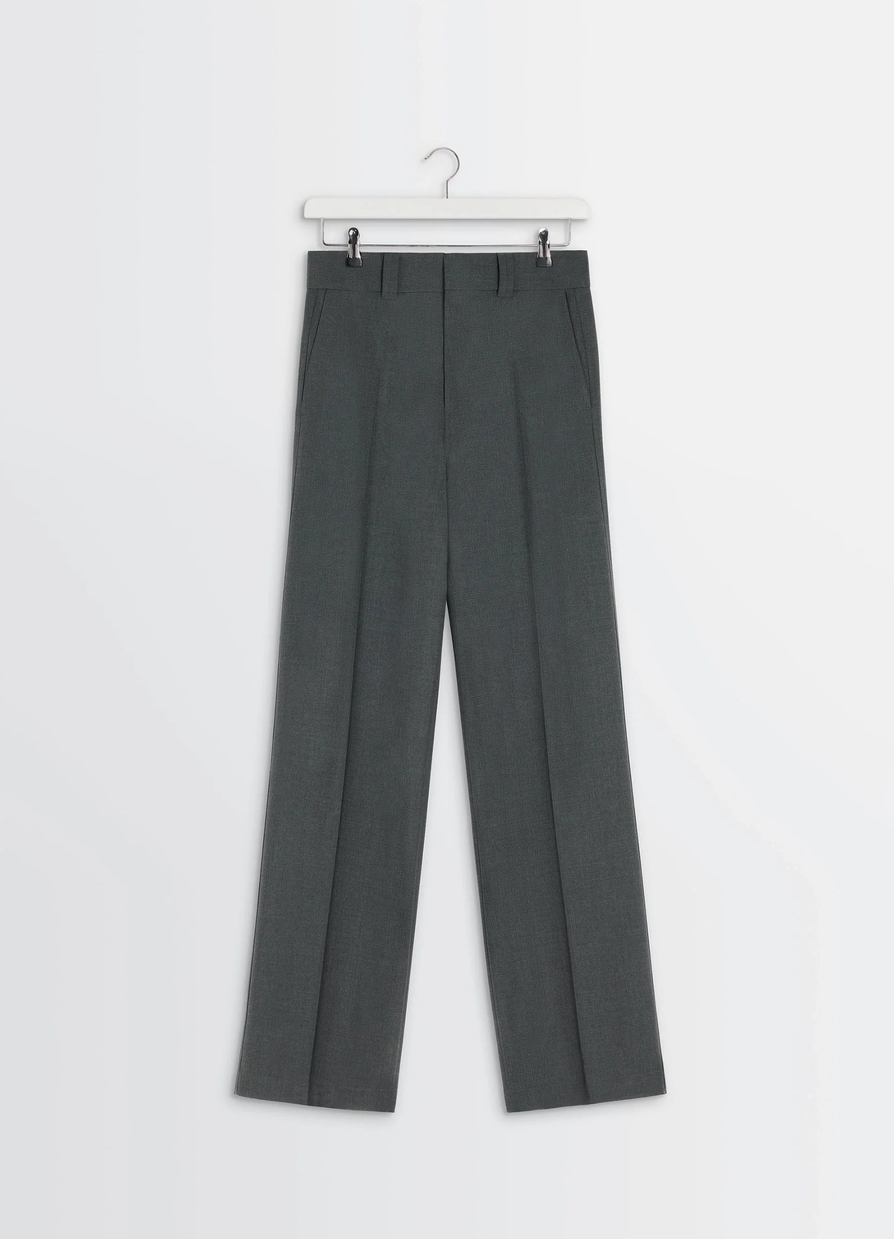 These tailored pants are in the spirit of traditional tailoring. They are made from a wool-blend suit fabric. With their characteristic twill weave, they are both dense and supple. The model is 177 cm and is wearing a size 36 (S). DETAILS Straight-leg tailored pants in wool-blend twill .Straight cut Belt loops at the waistband Closure with hook, button, and hidden zipper Italian side pockets Distinct front and black pleats Welted back pockets Made in Romania Style : PA1255 LF1048 CARE Main Material: 55% Polyester 45% Wool Main Lining: 100% Cotton Do not wash Do not bleach Do not tumble dry Cool ironing Soft dry clean