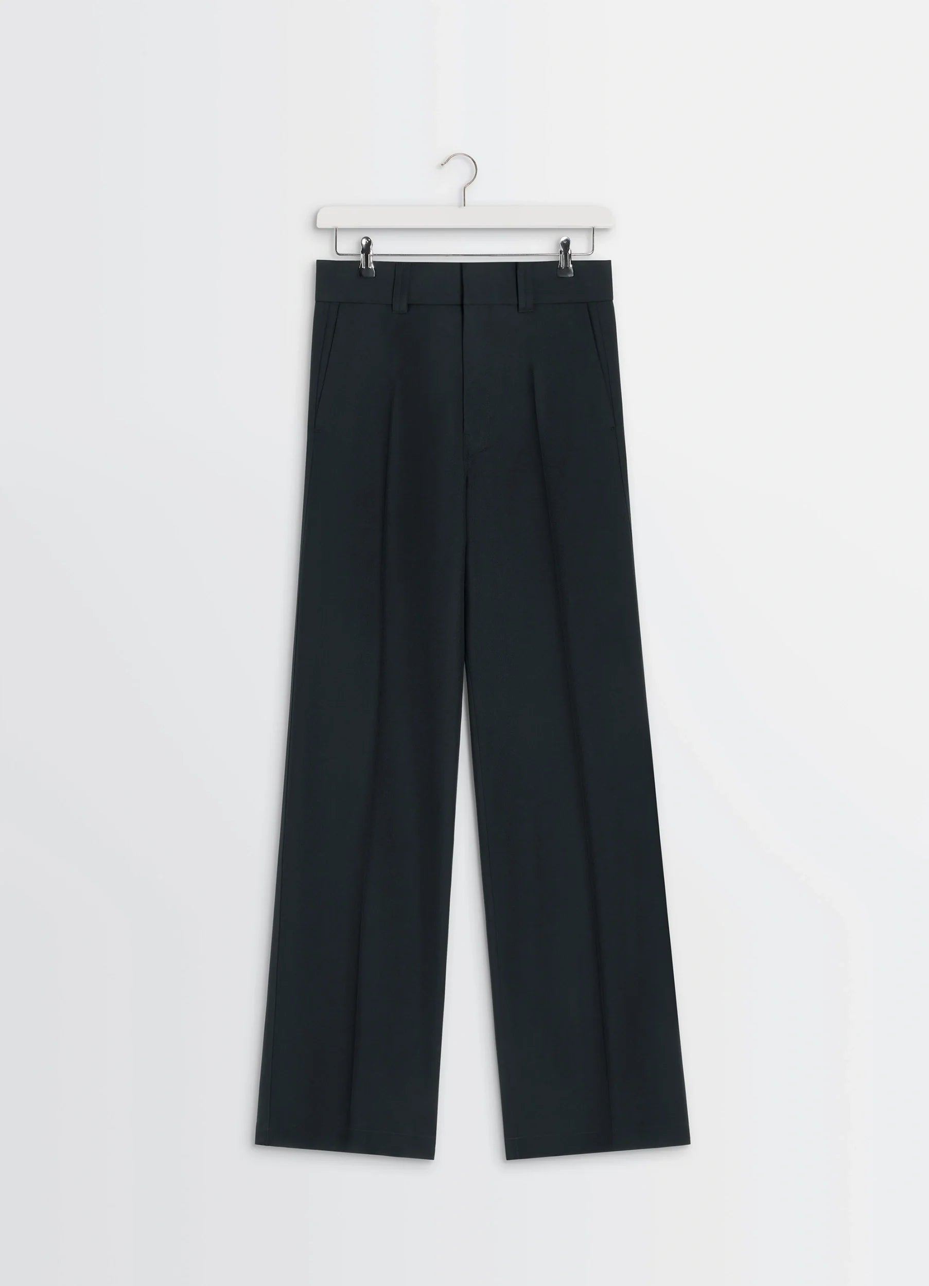 These tailored pants are in the spirit of traditional tailoring. They are made from a wool-blend suit fabric. With their characteristic twill weave, they are both dense and supple. The model is 177 cm and is wearing a size 36 (S). DETAILS Straight-leg tailored pants in wool-blend twill .Straight cut Belt loops at the waistband Closure with hook, button, and hidden zipper Italian side pockets Distinct front and black pleats Welted back pockets Made in Romania Style : PA1255 LF1048 CARE Main Material: 55% Polyester 45% Wool Main Lining: 100% Cotton Do not wash Do not bleach Do not tumble dry Cool ironing Soft dry clean