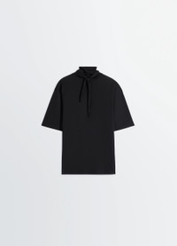 This is a classic summery LEMAIRE wardrobe staple. It is made in light and fluid cotton jersey that has been mercerised, granting a silky shine to the style. The Foulard T-shirt boasts a boxy fit and a stand collar with V-shape base that extends into a scarf. One can tie it on either side of the neck or fall on the front. The Model is 176cm / 5' 9½'' ft and is wearing a size 36 (S). This is a classic summery LEMAIRE wardrobe staple. It is made in light and fluid cotton jersey that has been mercerised, granting a silky shine to the style. The Foulard T-shirt boasts a boxy fit and a stand collar with V-shape base that extends into a scarf. One can tie it on either side of the neck or fall on the front. The Model is 176cm / 5' 9½'' ft and is wearing a size 36 (S). DETAILS T-Shirt With Foulard In Mercerised Jersey -Boxy fit Short sleeves Scarf attached to the stand collar Stitching details at the hem and neck Made in Portugal Style: TS0030 LJ1018 T-Shirt With Foulard In Mercerised Jersey -Boxy fit Short sleeves Scarf attached to the stand collar Stitching details at the hem and neck Made in Portugal Style: TS0030 LJ1018 CARE Main material: 100% cotton Soft wash 30° Do not bleach Do not tumble dry Cool ironing Do not dry clean Dry flat Main material: 100% cotton Soft wash 30° Do not bleach Do not tumble dry Cool ironing Do not dry clean Dry flat