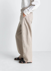 These belted Twisted trousers are a classic unisex LEMAIRE piece, with cut lines that round the leg and a removable belt. They are made from heavy broken twill treated with a snow wash for a frosted look. The model is 187 cm tall and wears a size 48 (M). These belted Twisted trousers are a classic unisex LEMAIRE piece, with cut lines that round the leg and a removable belt. They are made from heavy broken twill treated with a snow wash for a frosted look. The model is 187 cm tall and wears a size 48 (M). DETAILS Belted Twisted trousers in thick snow broken twill Straight cut Waistband with belt loops Removable matching belt with metal buckle Hook, button, and zip fastening Side seam pockets and back patch pockets Front twisted seams Tone-on-tone stitching LEMAIRE embossed leather patch at back Made in Morocco Style: PA326 LD1054 Belted Twisted trousers in thick snow broken twill Straight cut Waistband with belt loops Removable matching belt with metal buckle Hook, button, and zip fastening Side seam pockets and back patch pockets Front twisted seams Tone-on-tone stitching LEMAIRE embossed leather patch at back Made in Morocco Style: PA326 LD1054 CARE Main fabric: 100% cotton Main lining: 100% cotton Jacron patch: 100% cow leather Soft wash 30° Do not bleach Do not tumble dry Cool ironing Soft dry clean Wash upside down Main fabric: 100% cotton Main lining: 100% cotton Jacron patch: 100% cow leather Soft wash 30° Do not bleach Do not tumble dry Cool ironing Soft dry clean Wash upside down