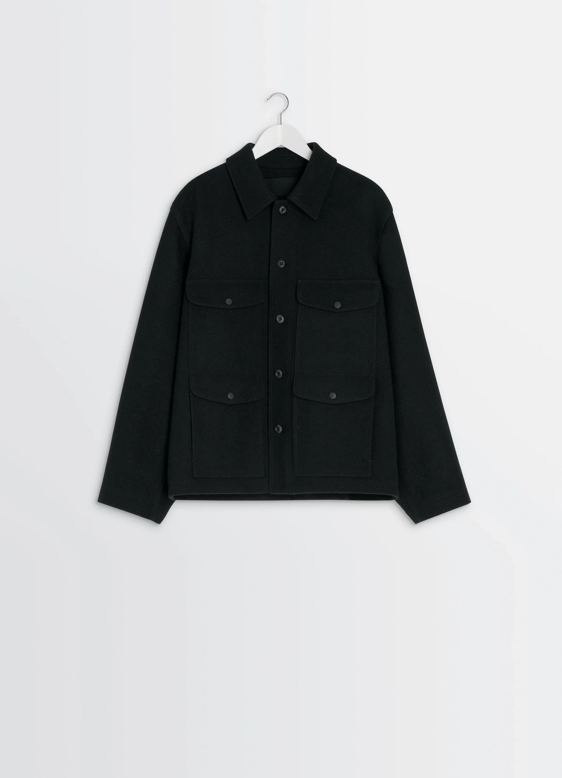 This pocketed jacket is in keeping with Lemaire's utilitarian aesthetic. Crafted in melton wool, this thick, dense, felted fabric offers a soft look to the piece. The model is 187 cm tall and is wearing a size 48 (M). This pocketed jacket is in keeping with Lemaire's utilitarian aesthetic. Crafted in melton wool, this thick, dense, felted fabric offers a soft look to the piece. The model is 187 cm tall and is wearing a size 48 (M). DETAILS Utility jaket in melton wool Oversized cut Shirt collar Front button closure Long sleeves Buttoned cuffs Four patch pockets on the front with snap flaps Inside patch pocket with buttoned closure Made in Lithuania Style : OW1168 LF1476 Utility jaket in melton wool Oversized cut Shirt collar Front button closure Long sleeves Buttoned cuffs Four patch pockets on the front with snap flaps Inside patch pocket with buttoned closure Made in Lithuania Style : OW1168 LF1476 CARE Main Material: 100% Wool Main Lining: 100% Cotton Do not wash Do not bleach Do not tumble dry Cool ironing Soft dry clean Main Material: 100% Wool Main Lining: 100% Cotton Do not wash Do not bleach Do not tumble dry Cool ironing Soft dry clean