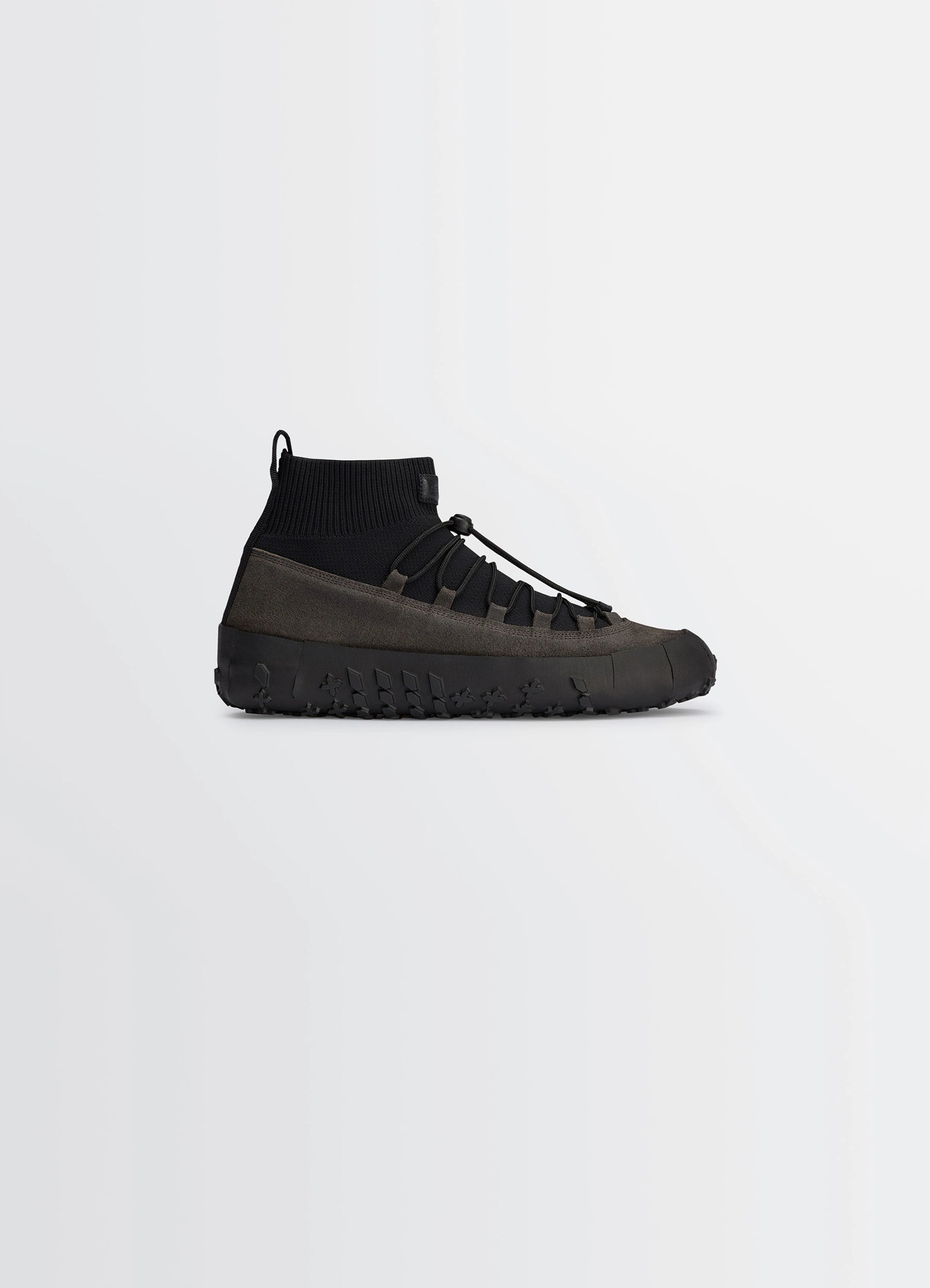 The Vibram Sneaker marks LEMAIRE’s first foray into the technical sneaker. They are made in collaboration with Vibram, known for their savoir-faire in terms of rubber soles. This style is made in smooth leather and incorporates a knitted sock and a closing cord with a rubber cord stopper. This comfortable and elegant style sits on a Wrap On sole, a specific innovation which guarantees both waterproofing and durability. DETAILS - Smooth leather - Knitted socks - Round laces with rubber cord stopper - Technical Vibram sole Made in Portugal Style: FO0115 LL0116 FABRICS & CARE Main Fabric: 100% Cow Second Fabric: 90% Polyamide/Nylon / 10% Elasthanne Main Lining: 100% Cow If exposed to water or high humidity, dry your shoes well with an absorbent cloth and let them air dry before storing them. Smooth leather: Use a soft cloth and apply a measured amount of uncolour milk or cream. Suede leather: Brush lightly with a sponge or special suede cloth.