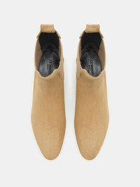 Allegra Chelsea Boot, handcrafted in taupe suede, with a cushioned calf leather insole, back zip fastening and leather piping. 40mm heel. Made in Italy.