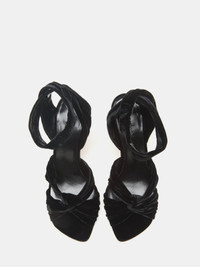 Antonia Pump, handcrafted in black velvet with an ankle strap, cushioned calf leather insole and 80mm heel. Made in Italy.
