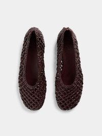 Mica Flat, handcrafted in burgundy knotted leather with a cushioned calf leather insole. 10mm heel. Made in Italy.