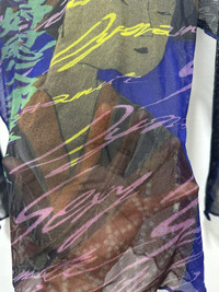 Japanese Brand - Rare Sexy Dynamite Mesh Shirt Punk Script Geisha Full Print