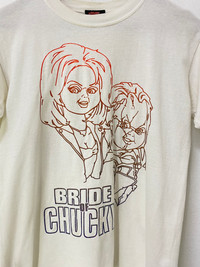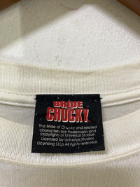 Shirt in used condition Read All Details Before Purchase... Please Dont Expect The Items Is New Or 100% Perfect... please do use measurements below to see if this will be a good fit first before purchasing Item Description Tag; Bride of chucky Size : Measurements: Pit To Pit: '' inch x Back Collar to Bottom: '' inch, Material : cotton ANY QUESTION ASK ME FIRST, BUY WITH CONFIDENT..THANK YOU. 1.Payment by Paypal only Expedited Shipping (Safer & Faster) Shipping via: DHL Express (with tracking no.) Estimated time: 5-7 days Shipping fee: 20 usd Please check all clothing measurements in the listings before ordering to insure you get the proper fit. Please be aware that these are vintage pieces. They will show some minor, normal signs of wear. We try to list the noticeable flaws in the listings. Refund will be given if the item not mentioned in the listing. We accept return item within 14 days from the day customer received the original item. Buyer bears return shipping coast. Please leave a message with any queries! #PLEASE LEAVE YOUR PHONE NUMBER DURING PURCHASE # PLEASE LEAVE YOUR PHONE NUMBER DURING PURCHASE # PLEASE LEAVE YOUR PHONE NUMBER DURING PURCHASE #