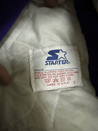 Jacket in used condition Read All Details Before Purchase... Please Dont Expect The Items Is New Or 100% Perfect... please do use measurements below to see if this will be a good fit first before purchasing Item Description Size : large tag : starter Measurements: Pit To Pit: ” inch x Back Collar to Bottom: ” inch Material: cotton/nylon ANY QUESTION ASK ME FIRST, BUY WITH CONFIDENT..THANK YOU. 1.Payment by Paypal only Expedited Shipping (Safer & Faster) Shipping via: DHL Express (with tracking no.) Estimated time: 5-7 days Shipping fee: 20 usd Please check all clothing measurements in the listings before ordering to insure you get the proper fit. Please be aware that these are vintage pieces. They will show some minor, normal signs of wear. We try to list the noticeable flaws in the listings. Refund will be given if the item not mentioned in the listing. We accept return item within 14 days from the day customer received the original item. Buyer bears return shipping coast. Please leave a message with any queries! #PLEASE LEAVE YOUR PHONE NUMBER DURING PURCHASE # PLEASE LEAVE YOUR PHONE NUMBER DURING PURCHASE # PLEASE LEAVE YOUR PHONE NUMBER DURING PURCHASE # 101