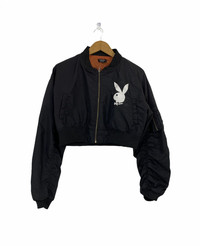 Vintage Playboy Crop Top Bomber Jacket Logo Design