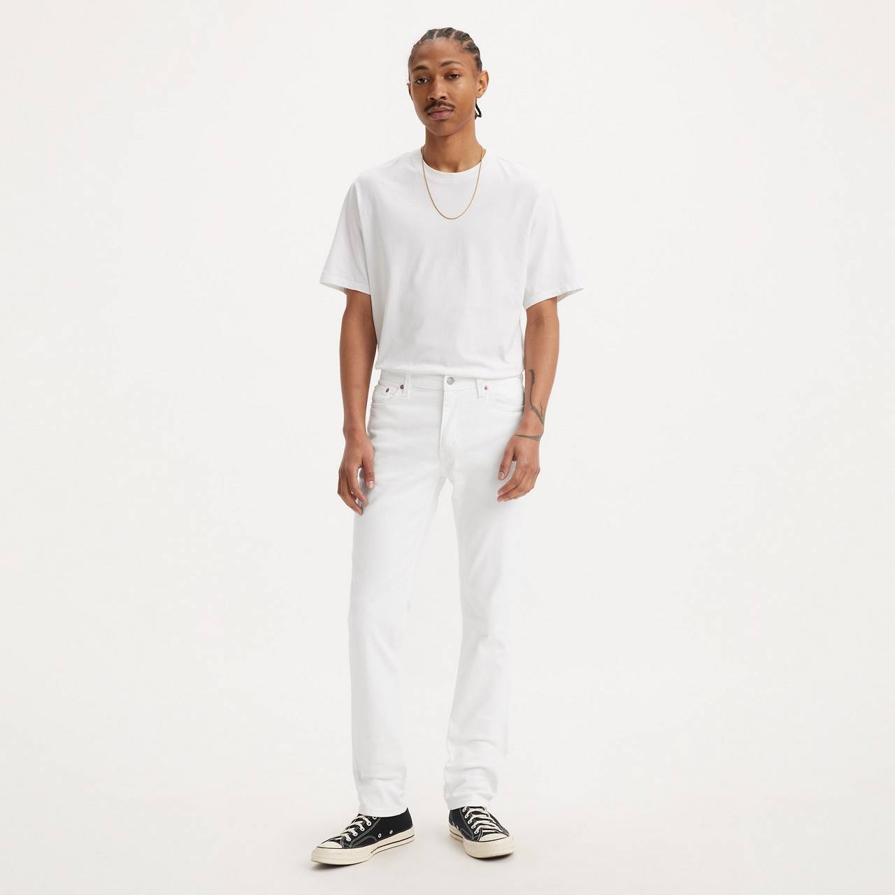 Think of this modern slim with room to move as not-so-skinny skinny jeans. (If you want the style, but not the feeling, this is a great alternative.) With a streamlined fit that’s narrow through the seat and thigh, the 511™ Slim is perfectly calibrated to look good with everything—without looking like you’re trying too hard. - The definitive slim jeans - Narrow through the seat and thigh, but still roomy - Designed to fit like they’ve been tailored just for you - Finished with our iconic arcuate stitching - We infused the horizontal ("weft") threads with advanced stretch technology—so these jeans have extra give and flexibility, without getting saggy or baggy Style # 045111943 Color: Castilleja - White - Stretch How it Fits - Slim Throughout - Sits below your waist - Slim leg Composition & Care - 97% cotton, 3% elastane - Denim - Stretch - Zip fly - 5-pocket styling - Machine wash cold - normal cycle. wash inside out with like colors, do not bleach, tumble dry medium, warm iron, dry clean possible - Imported