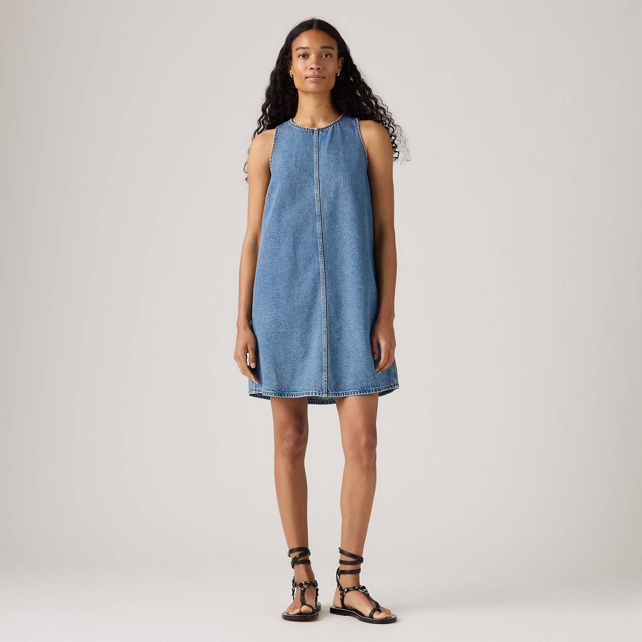 This vintage-inspired '90s Shift Dress features an easy silhouette, a perfect mini length and throw-on-and-go style. - A vintage-inspired shift dress - Cut with an A-line fit Style # 003NO0000 Color: Swipe Right - Medium Wash How it Fits - Relaxed fit Composition & Care - 100% Cotton - Denim - Non-Stretch - Sleeveless - Imported