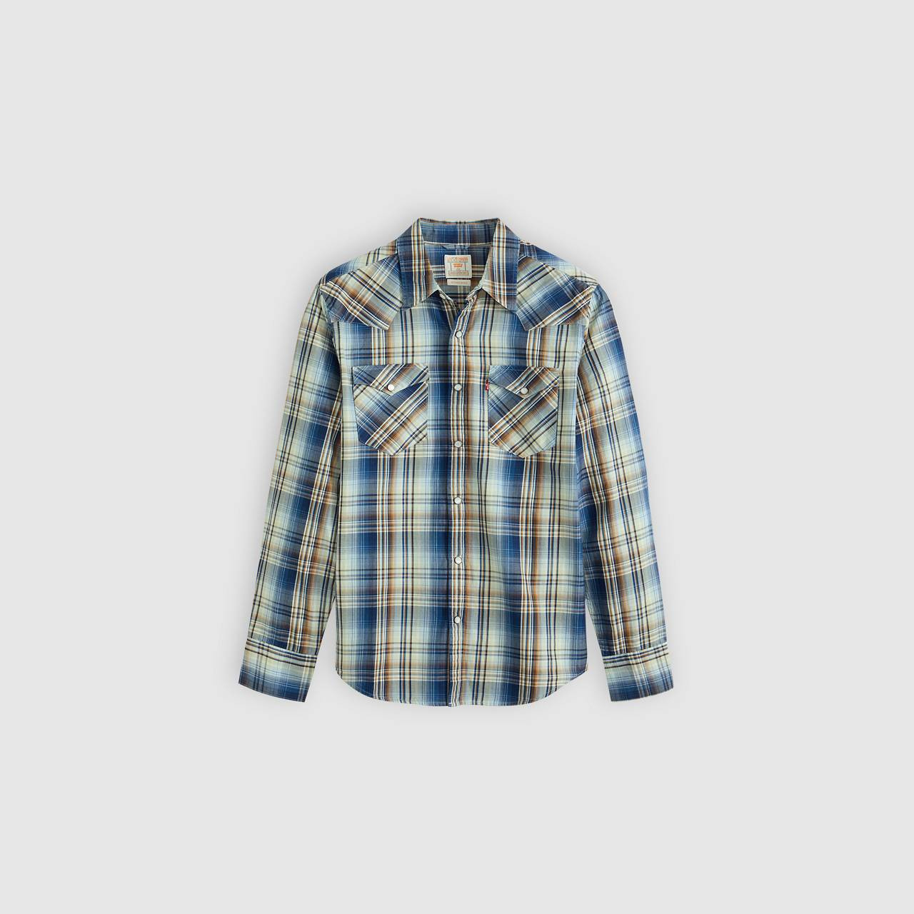 Cowboy boots and chaps not included. As a brand with deep roots in the American West, there's nothing we love more than this rugged-yet-put-together Barstow Standard Fit Western Shirt. True to the classic, this essential features a distinctive snap placket, pointed yoke and curved hem. Pair it with your favorite blue jeans for the iconic denim-on-denim look, or size up and wear like a jacket—there are no rules in the Wild West. - Our Western Shirts have been worn by generations and continue to define the modern dress code - A testament to timeless American style - Made with all the features that set our Western Shirt apart from the rest - Two button-pockets at chest Style # 857440113 Color: Raul Plaid Niagara Mist - Multi-Color How it Fits - Standard fit Composition & Care - 100% Cotton - Cotton - Point collar - Long sleeves - Imported