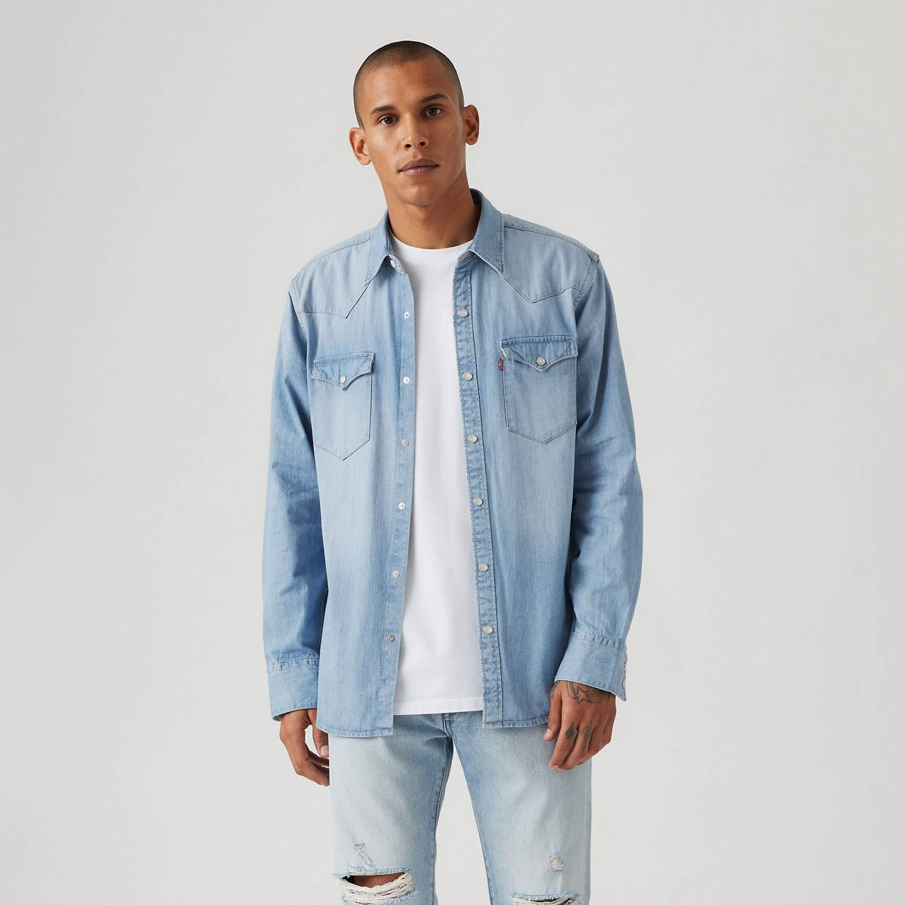 Cowboy boots and chaps not included. As a brand with deep roots in the American West, there's nothing we love more than this rugged-yet-put-together Barstow Standard Fit Western Shirt. True to the classic, this essential features a distinctive snap placket, pointed yoke and curved hem. Pair it with your favorite blue jeans for the iconic denim-on-denim look, or size up and wear like a jacket—there are no rules in the Wild West. - Our Western Shirts have been worn by generations and continue to define the modern dress code - A testament to timeless American style - Made with all the features that set our Western Shirt apart from the rest - Two button-pockets at chest Style # 857440047 Color: Indigo Stonewash - Light Wash How it Fits - Standard fit Composition & Care - 100% cotton - Denim - Point collar - Long sleeves - Machine Wash Cold, Do Not Bleach, Tumble Dry Medium, Hot Iron If Needed, Dry Cleaning Possible, Wash Inside Out With Like Colors - Imported