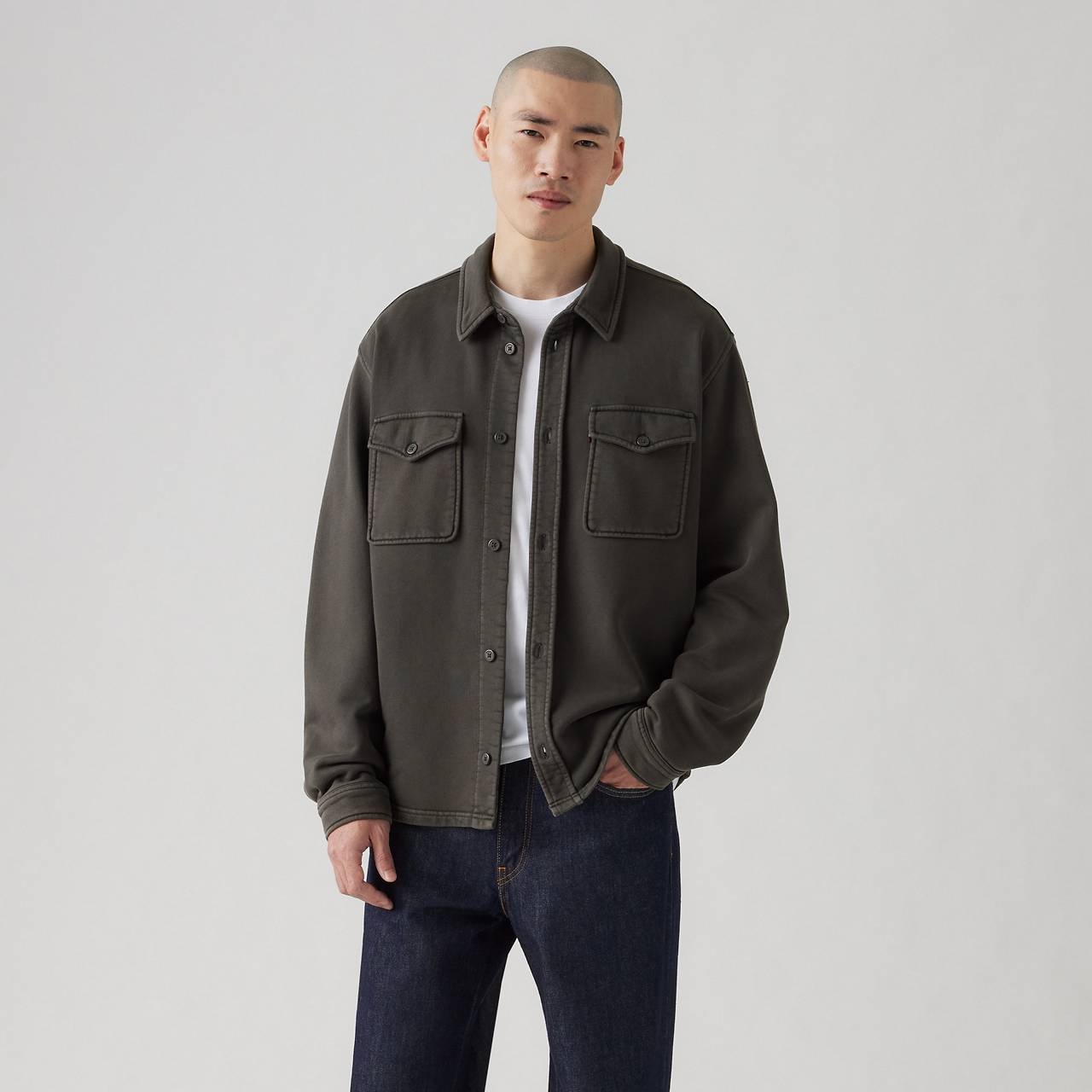 A classic sweatshirt with a utilitarian-inspired design. We made our Bayview Soft Worker with an easy, relaxed fit, a button-down collar and soft, comfortable fabric. - A utilitarian-inspired sweatshirt - Cut with a relaxed fit Style # 000VS0001 Color: Medium Vintage Heather Grey - Black How it Fits - Relaxed fit Composition & Care - 100% Cotton - French Terry - Button-down collar - Long sleeves - Machine wash cold, Do not bleach, Tumble dry low, Warm iron if needed, Dry cleaning possible, Color may transfer when new. wash before wearing, Wash inside out with like colors - Made in Pakistan