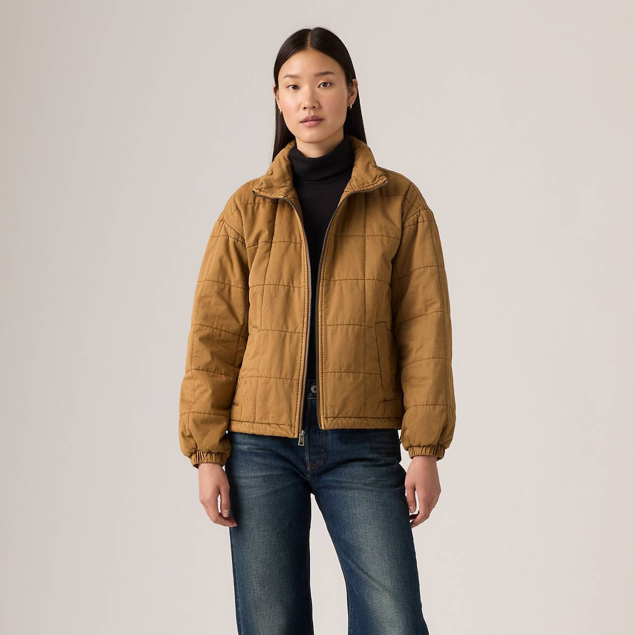 Stay warm and stylish with the Levi's® Box Quilted Relaxed Cotton Jacket. Designed with a laid-back fit and a modern box-quilted pattern, this jacket brings a fresh twist to classic outerwear. Crafted from breathable, durable cotton, it features a full front zipper, elasticized cuffs, and convenient side pockets for everyday ease. Inside, a smooth, lining enhances comfort, while an inner pocket on the left side adds practical storage for your essentials. Whether you're layering up for a chilly day or adding texture to your outfit, this jacket delivers comfort, function, and timeless Levi's® style. - Box quilted design - Center front zipper closure - Two lower welt pockets provides a tucked away space for your essentials - Adjustable bungee cords at the hem for a customizable fit Style # 595450287 Color: Tobacco - Brown How it Fits - Standard Fit - Long sleeves Composition & Care - 100% Cotton - Cotton - Machine wash cold with like colors on delicate cycle. Use only non-chlorine bleach when needed. Tumble dry low. Cool iron if necessary - China