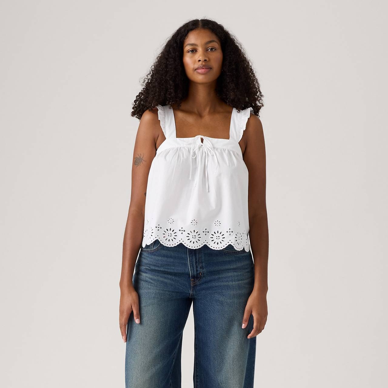 Top off your look with our Cecilia Top. It features a sweet straight neckline with lace trim, a relaxed fit and eyelet detailing. - A sweet everyday top - Cut with a relaxed fit - Features eyelet detailing and lace trim Style # 003ZD0000 Color: Bright White How it Fits - Relaxed fit Composition & Care - 100% Cotton - Cotton - Sleeveless - Imported