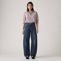 Love the classic baggy denim look but dread the waist gap? Look no further than our Cinch Barrel jeans. Cut with a flattering high rise and a curved leg, this style features adjusters on the back for a tailored-to-you fit that celebrates every curve. - Baggy jeans, without the waist gap - Cut with a barrel leg - Features adjusters on the back for a tailored-to-you fit - With knee darts - Designed to stack at the hem Style # 003V50001 Color: New Shades - Dark Wash How it Fits - Loose Through The Hip And Thigh - High rise - Tapered leg Composition & Care - 95% Cotton, 5% Recycled Cotton - Denim - Non-Stretch - 5-pocket styling - Recycled cotton - Imported