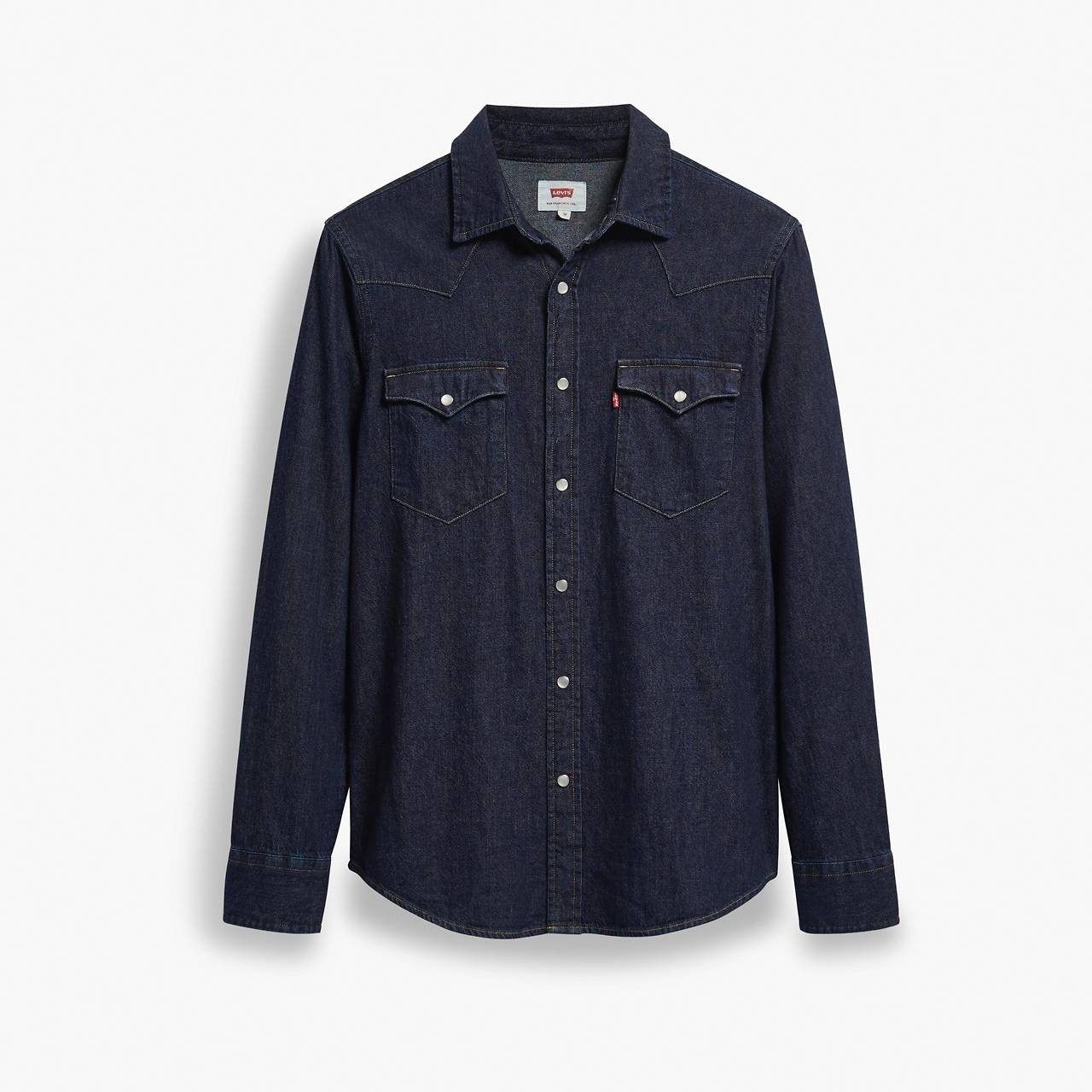 Cowboy boots and chaps not included. As a brand with deep roots in the American West, there's nothing we love more than this rugged-yet-put-together Classic Standard Fit Western Shirt. True to the classic, this essential features a distinctive snap placket, pointed yoke and curved hem. Pair it with your favorite blue jeans for the iconic denim-on-denim look, or size up and wear like a jacket—there are no rules in the Wild West. - Our Western Shirts have been worn by generations and continue to define the modern dress code - A testament to timeless American style - Made with all the features that set our Western Shirt apart from the rest Style # 857450002 Color: Red Cast Rinse - Dark Wash How it Fits - Standard fit Composition & Care - 100% Cotton - Denim - Point collar - Long sleeves - Machine Wash Cold, Do Not Bleach, Tumble Dry Medium, Hot Iron If Needed, Dry Cleaning Possible, Wash Inside Out With Like Colors